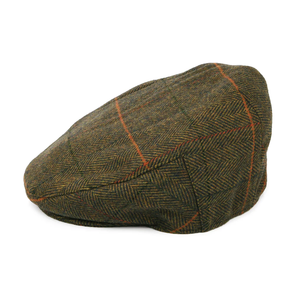 Barbour Hats Wilkin Windowpane Herringbone Flat Cap - Olive-Multi