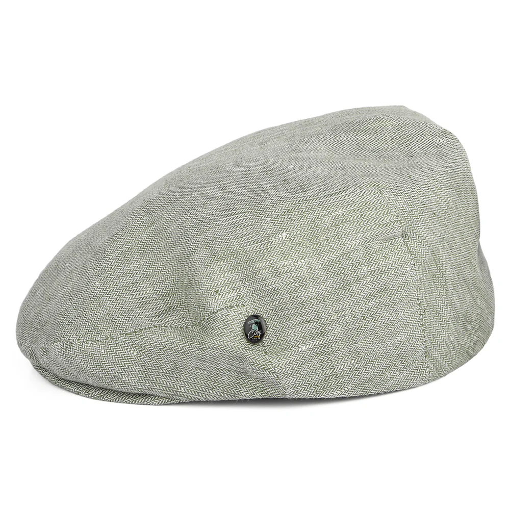 City Sport Micro-Herringbone Linen Flat Cap - Sage