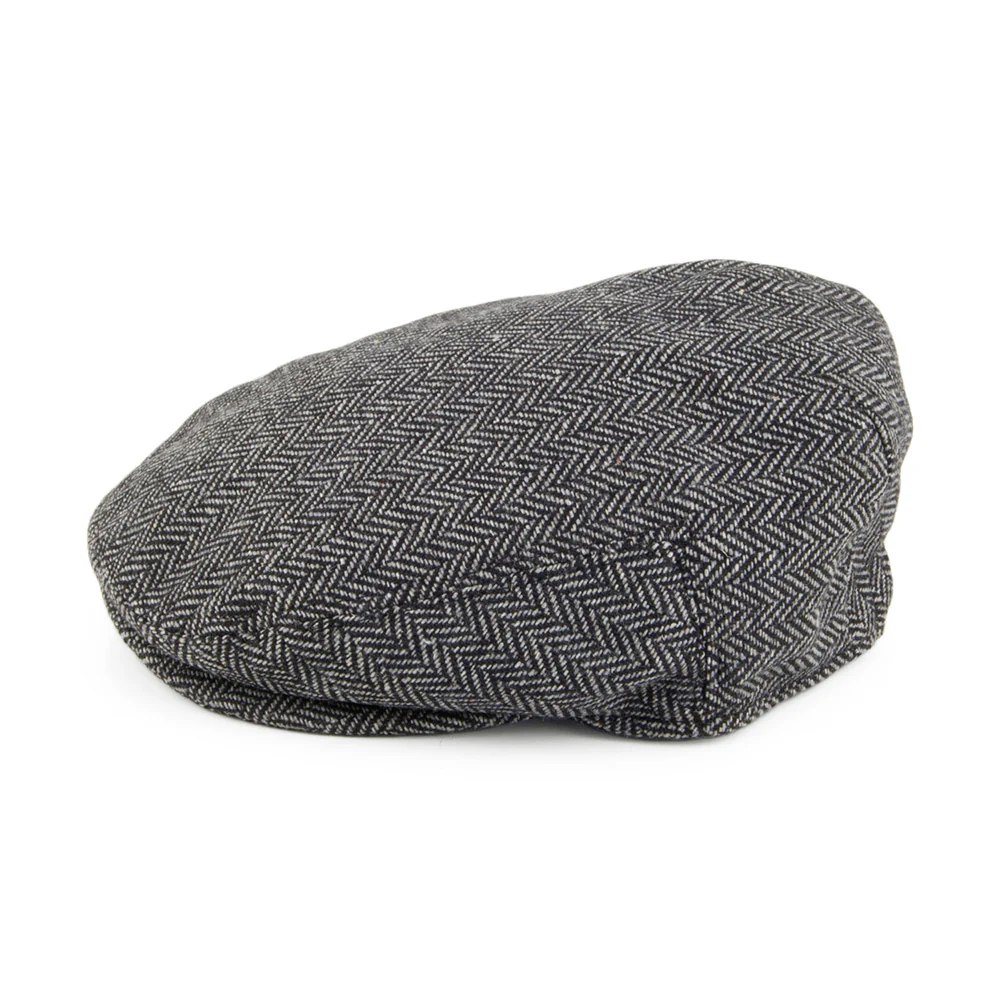 Here is the Jaxon & James Baby Herringbone Flat Cap in grey. This classic flat cap style has been designed specifically for your little one. It is made of a wool blend and has a sewn down brim, grosgrain sweatband, lining and an elastic band at the back so it will stretch to fit.