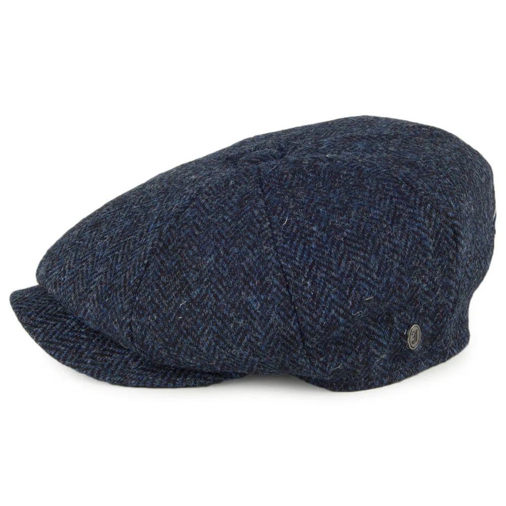 The Jaxon & James HARRIS TWEED Skye Newsboy Cap in blue-black is a simple and stylish design by the legendary hat makers.