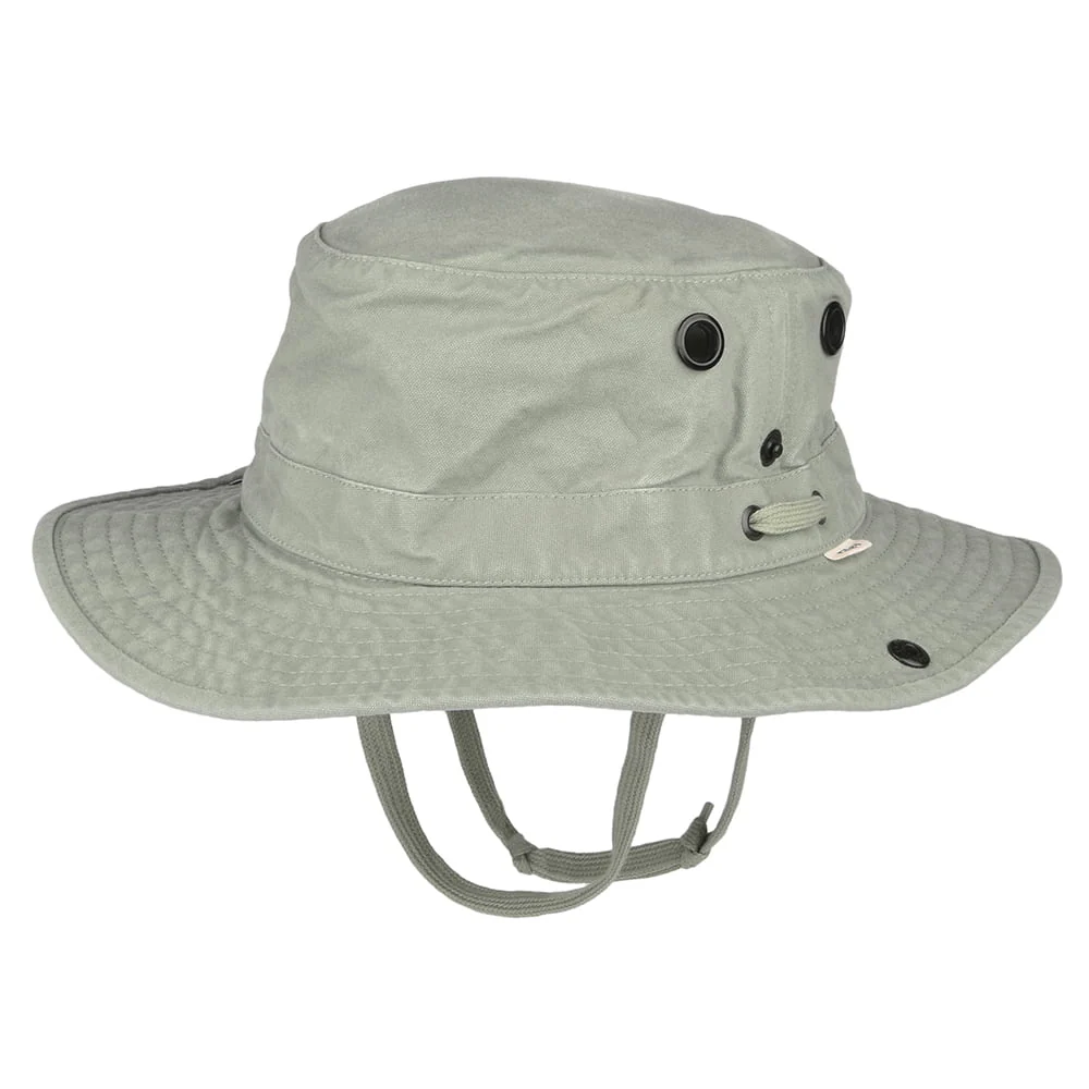 The Tilley T3 Wanderer in khaki is a classic cotton duck canvas hat suited for the great outdoors. This hat repels water and blocks UV rays. The sides of the brim can be held up against the crown with metal press studs. An adjustable chin cord ensures it always stays safely on your head.